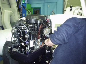 monteerde allereerste Tohatsu buitenboordmotor 90 PK TLDI op 19